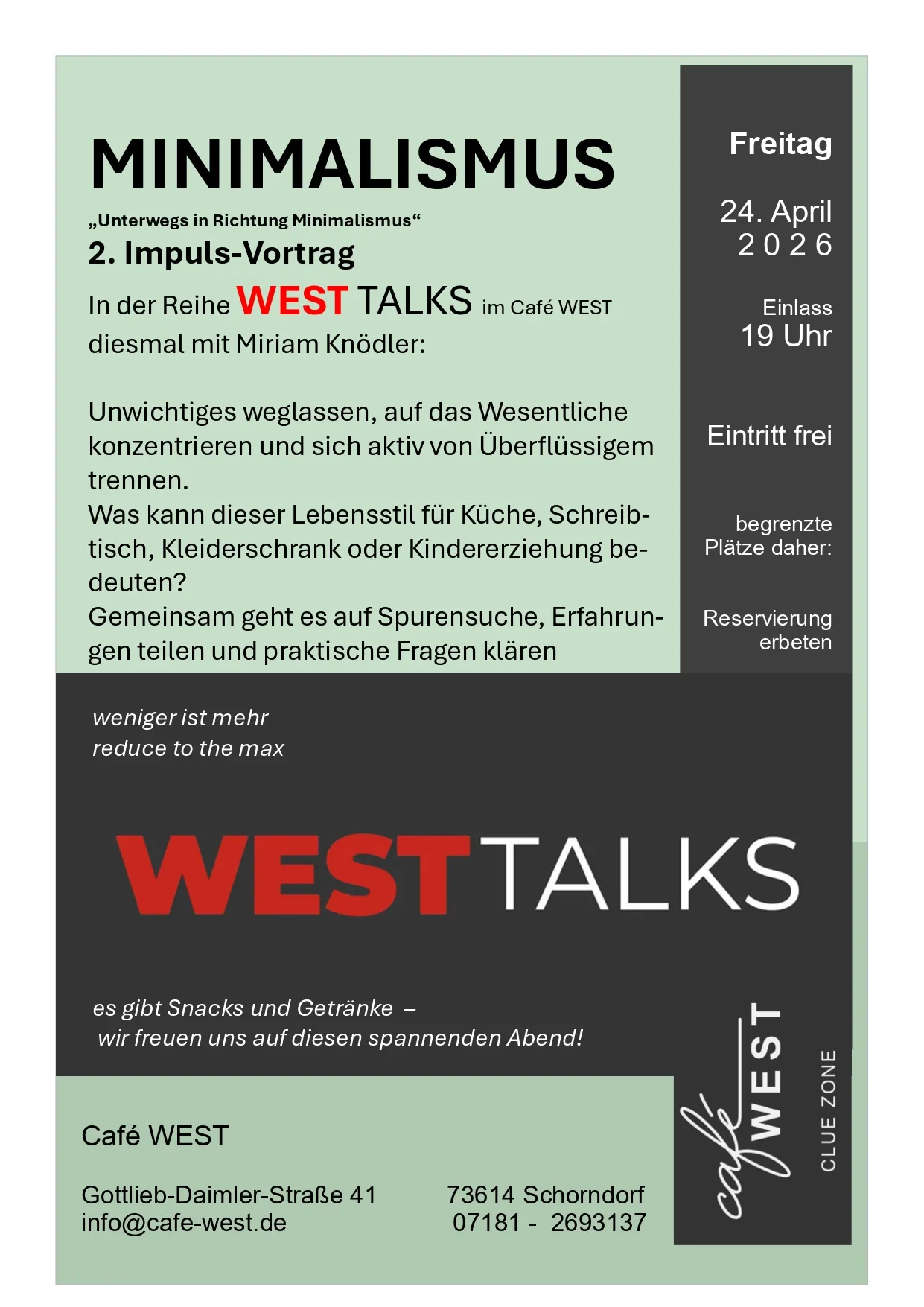 die Plätze sind begrenzt - daher Reservierung erbeten